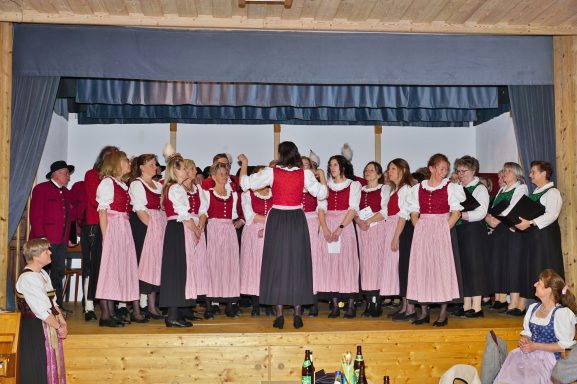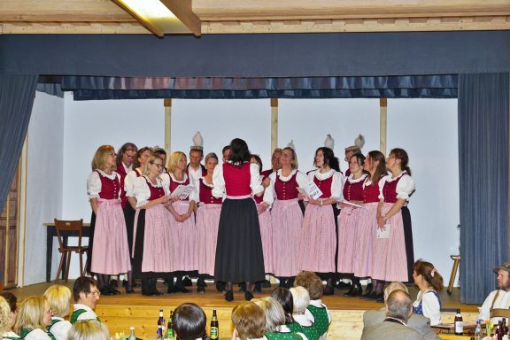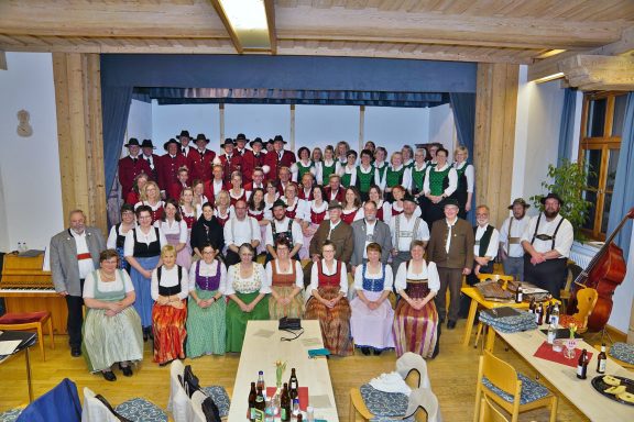 Nach der heiligen Messe fand im Pfarrsaal die Jubiläumsfeier mit unseren Ehrengästen: 2. Bürgermeister Georg Seitz, dem Präsidenten des Bayerischen Sängerbundes Herrn Seebacher, Herrn Georg Hornsteiner von der Raiffeisenbank Mittenwald sowie unserem Pfarrer Engel statt. Dank auch unseren Gastchören: Frauenchor Scarantia, Die Steinrösler und dem MGV Porta Claudia die diesen Abend zu einem unvergesslichen Erlebnis machten.