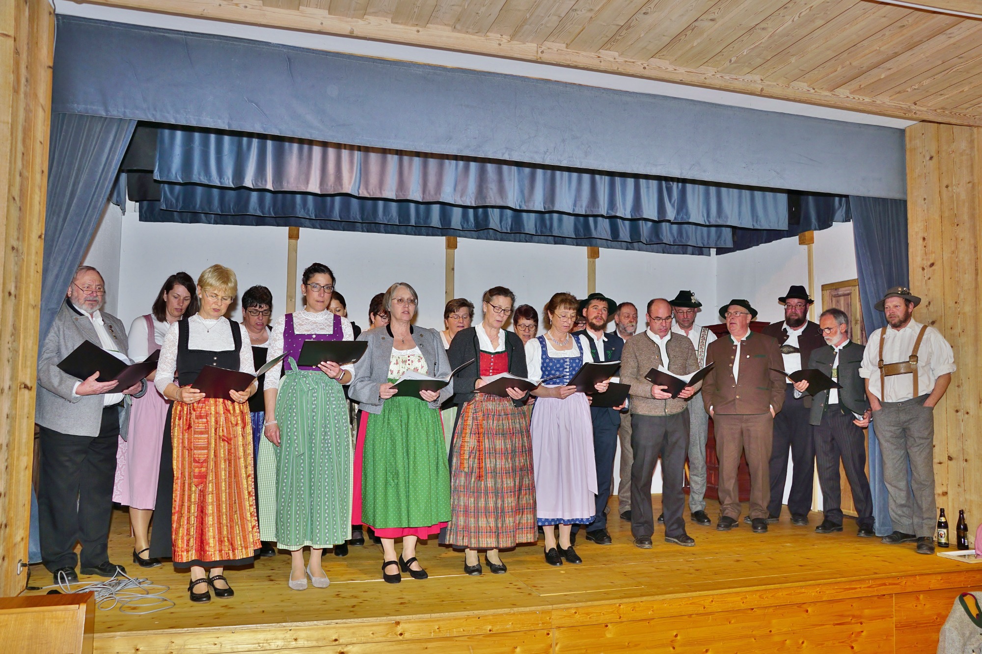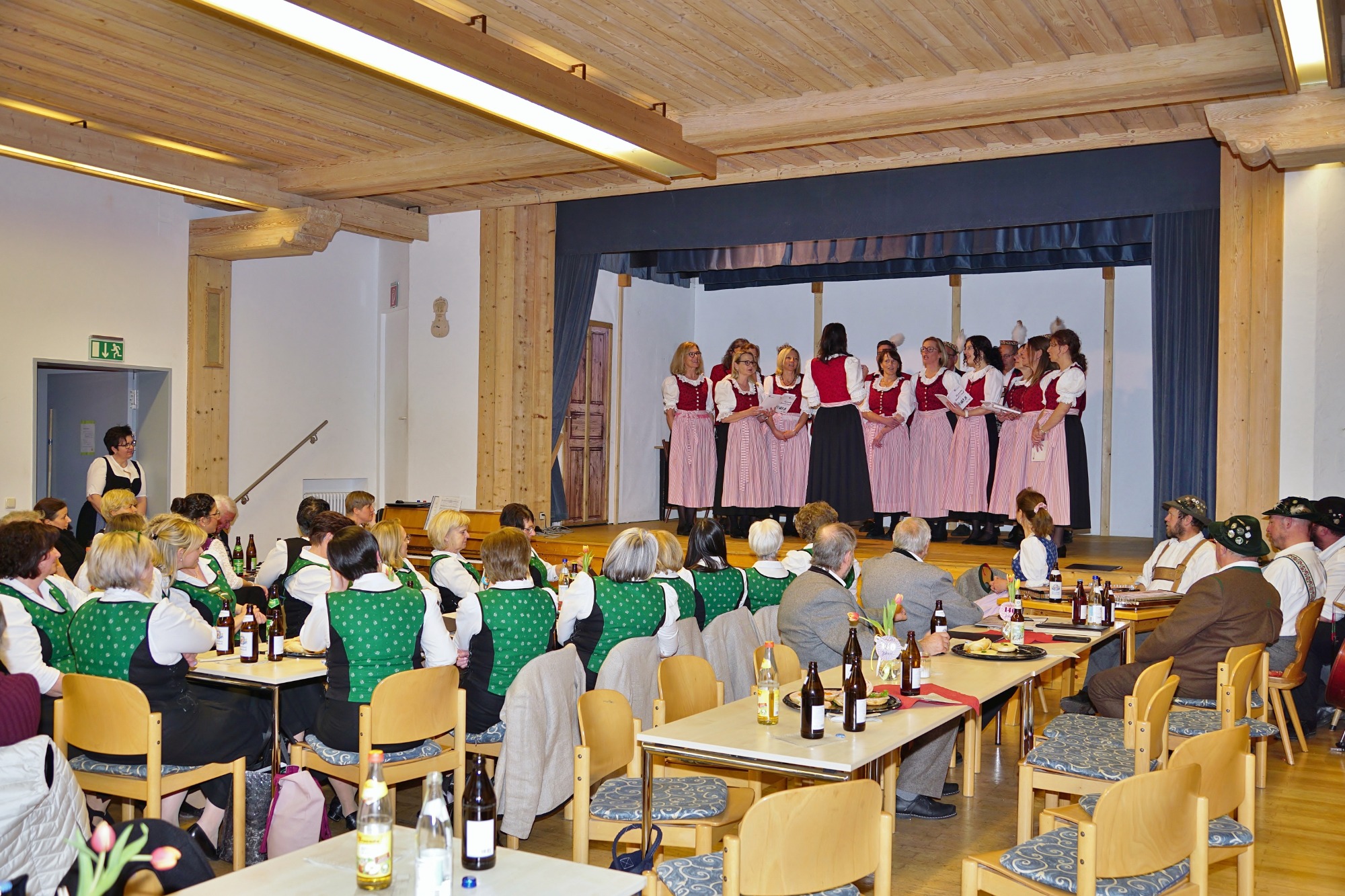 Nach der heiligen Messe fand im Pfarrsaal die Jubiläumsfeier mit unseren Ehrengästen: 2. Bürgermeister Georg Seitz, dem Präsidenten des Bayerischen Sängerbundes Herrn Seebacher, Herrn Georg Hornsteiner von der Raiffeisenbank Mittenwald sowie unserem Pfarrer Engel statt. Dank auch unseren Gastchören: Frauenchor Scarantia, Die Steinrösler und dem MGV Porta Claudia die diesen Abend zu einem unvergesslichen Erlebnis machten.